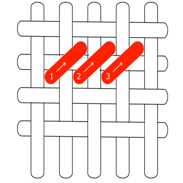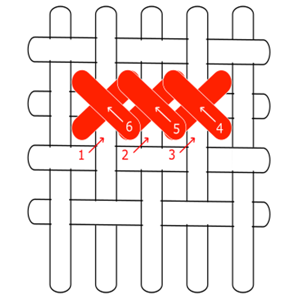 Cross stitch is made by a series of horizontal stitches going from left to right.