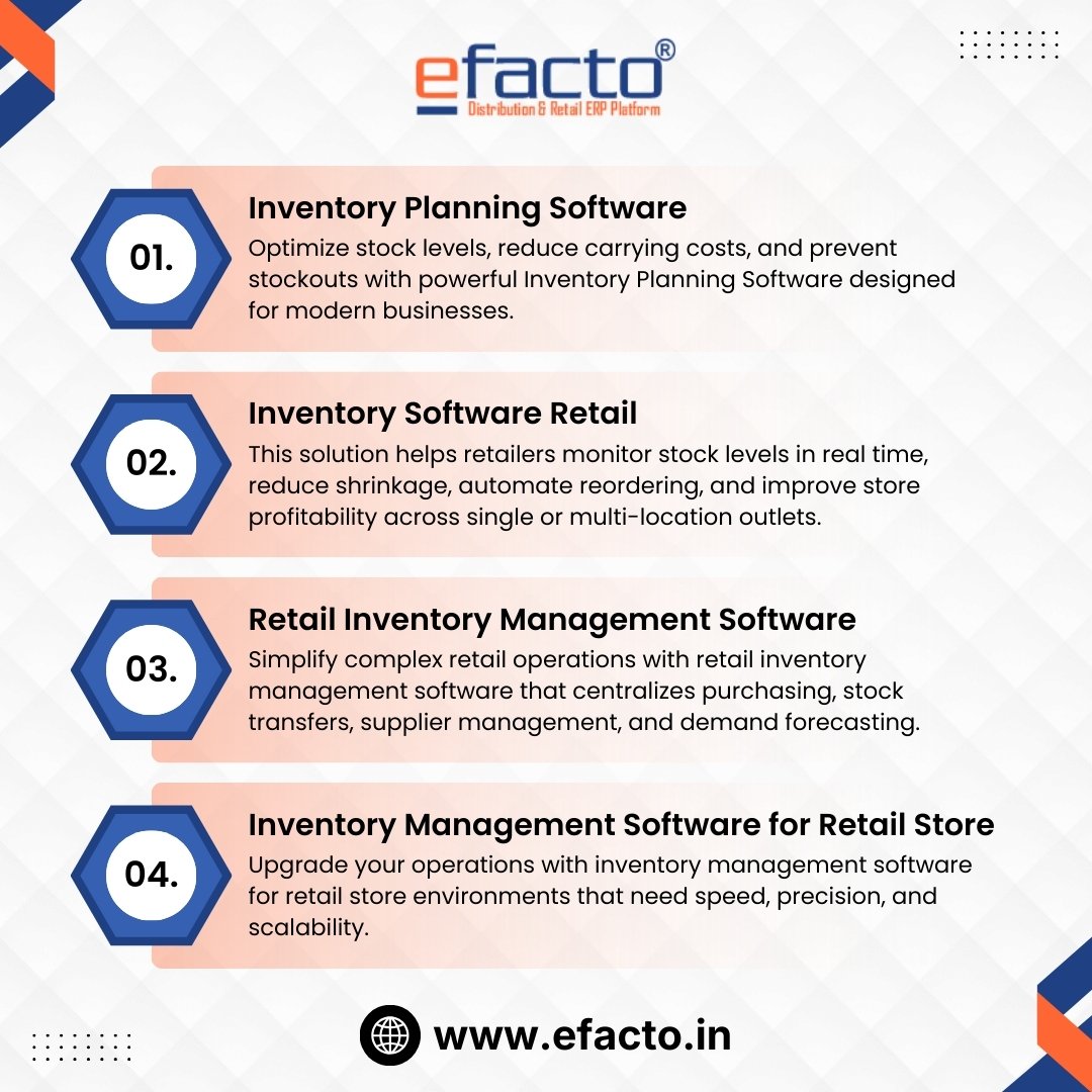 Optimize stock levels, reduce carrying costs, and prevent stockouts with powerful Inventory Planning Software designed for modern businesses. Gain real-time visibility, accurate demand forecasting, automated replenishment, and multi-location inventory control to streamline operations and boost profitability. Ideal for retailers, wholesalers, and distributors looking to improve supply chain efficiency and customer satisfaction. Discover scalable, user-friendly solutions tailored for growing businesses with Efacto’s reliable technology and expert support.