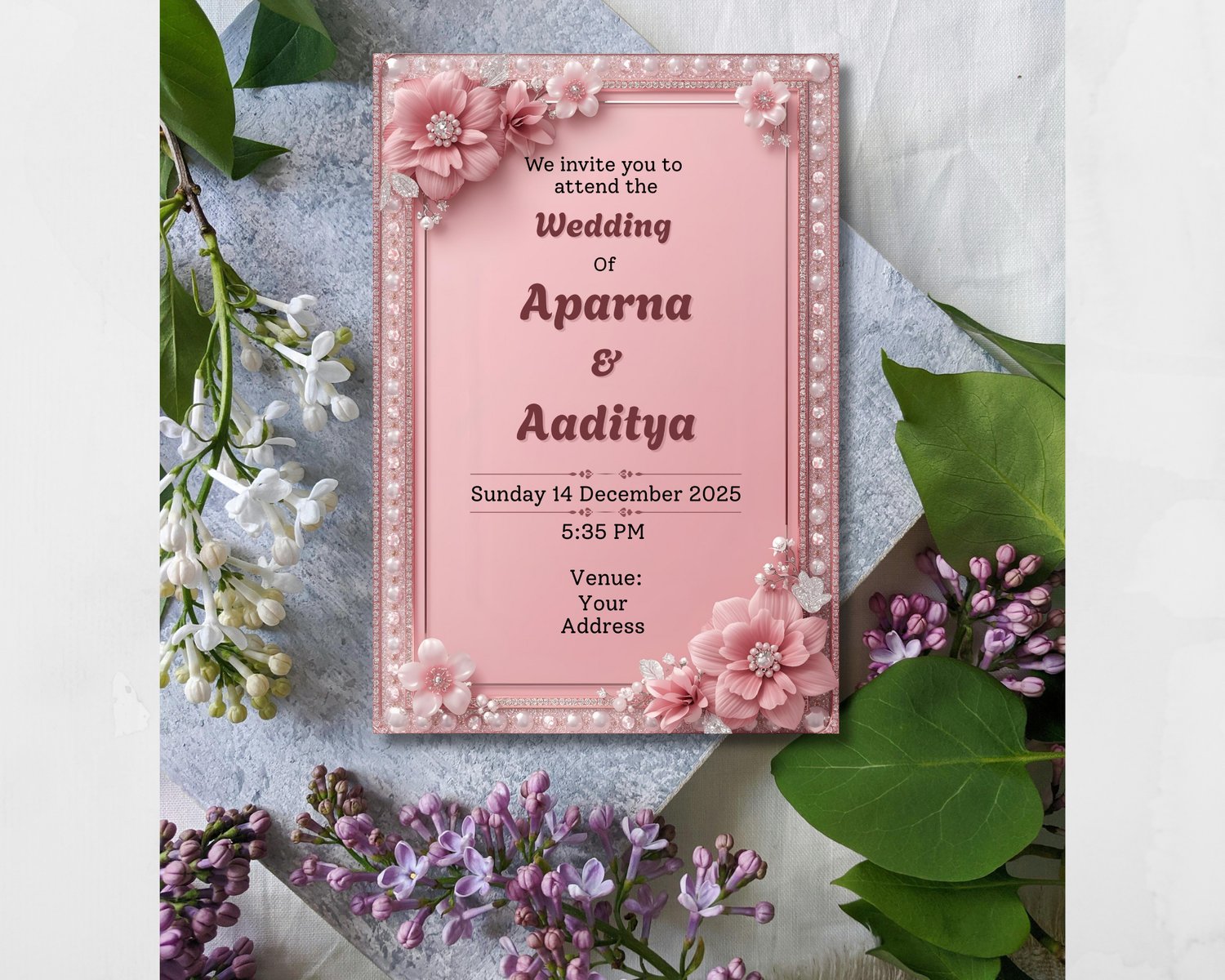 Elegant Pink Floral Wedding Invitation Template | Editable Canva Wedding Card | Digital Indian Wedding Invite