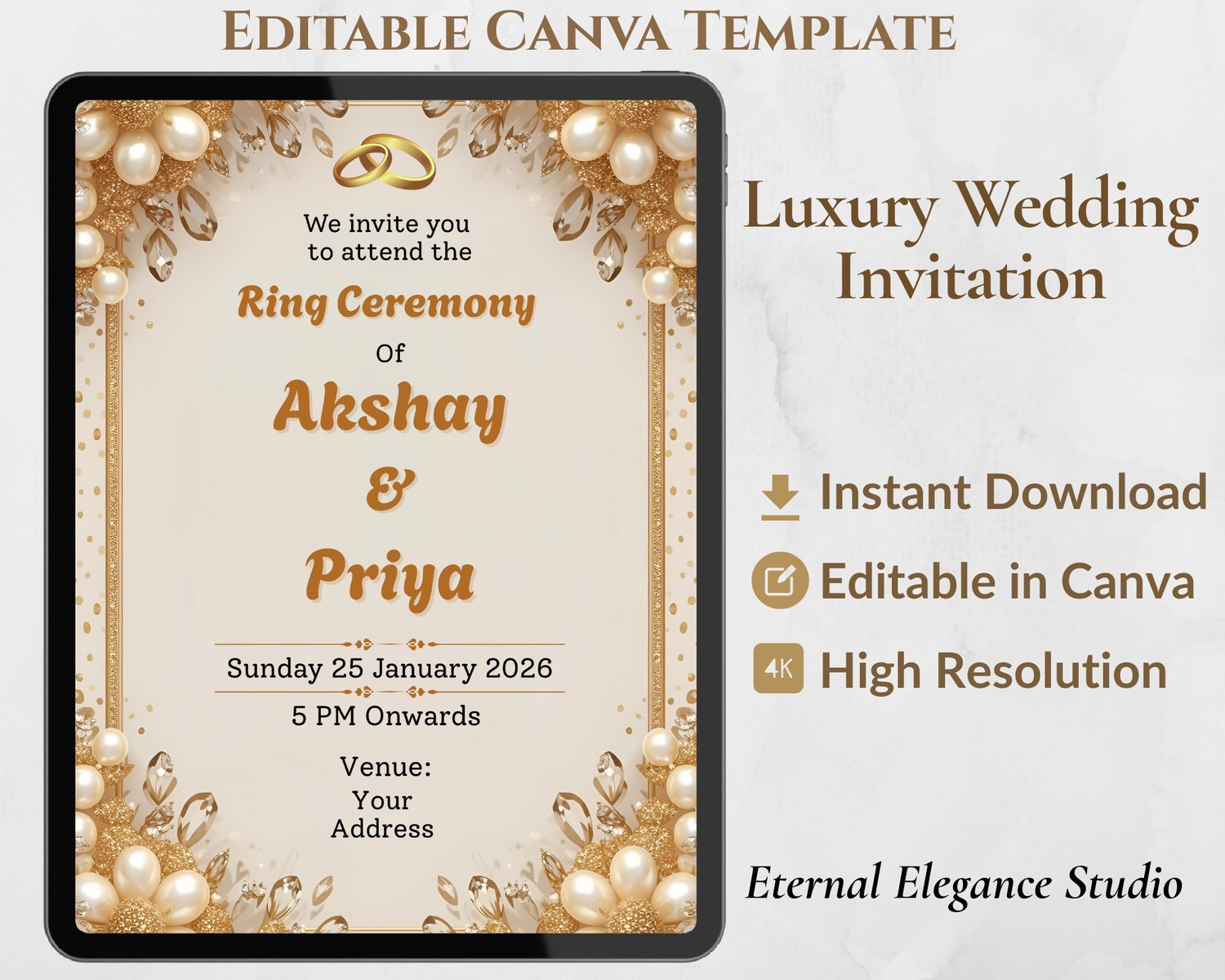 Editable Ring Ceremony Invitation Template | Elegant Gold Engagement Invitation | Canva Digital Invite