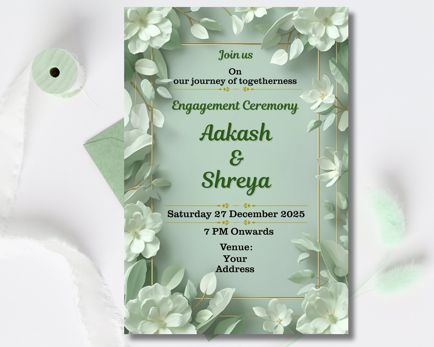 Green Floral Engagement Invitation Template | Elegant Editable Digital Engagement Ceremony Card