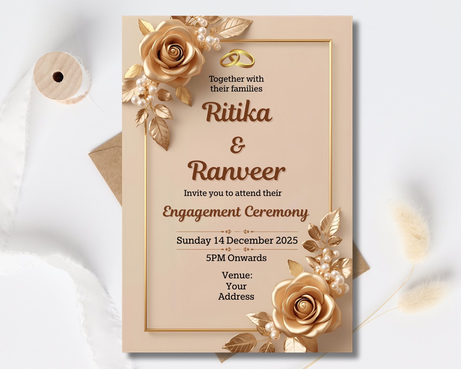 Elegant Gold Floral Engagement Invitation Template | Editable Canva Engagement Card | Ring Ceremony Invitation | Digital Download