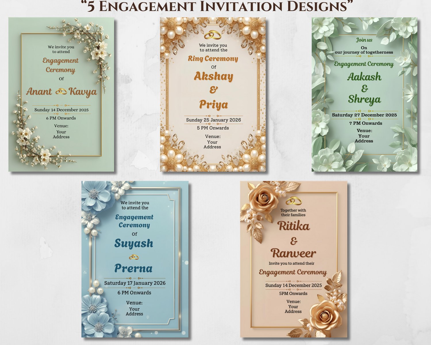 5 Engagement Invitation Templates Bundle | Editable Canva Invitations