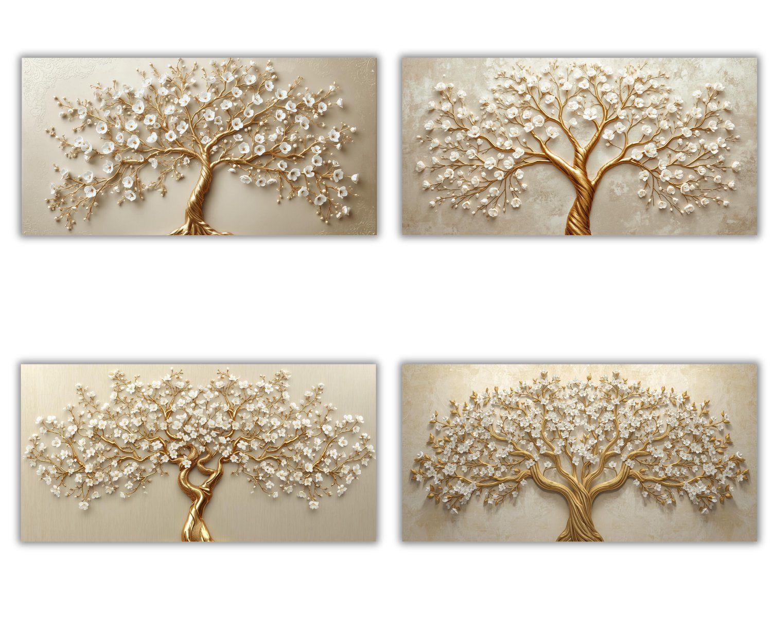 4 Gold Tree Wall Art Bundle – Luxury Neutral Botanical Prints (3 Sizes Included)
