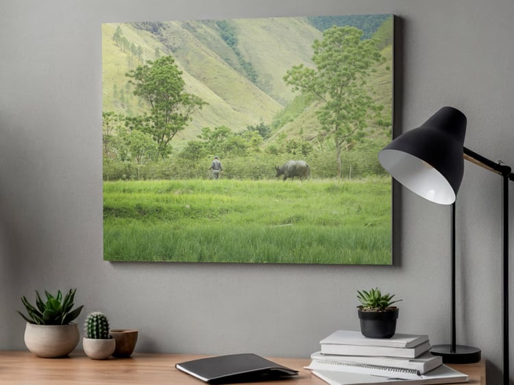 An everyday, quiet moment in the green valleys of Lake Toba - a farmer walking with his buffalo through soft terraces and sweeping hills.