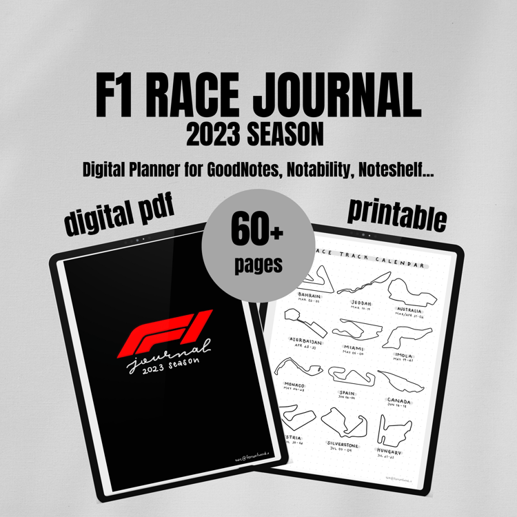 Hi my name is Vale, I’m 22 years old from Costa Rica and I’ve been a Formula 1 Fan since the end of 2021. I’ve always been a really creative person. I enjoy journaling, drawing, writing, lettering, crocheting embroidery, all of it. During 2022, I started making a physical journal for the 2022 Formula 1 World Championship and when I posted about it on my Twitter @ferrarifwend_v many of my followers or people who saw the post told me that I should consider selling them. So when the season ended I decided I wanted to try. I spent 3 months creating the first digital journal by hand on mi iPad; drawing each flag, each circuit, the country name and every bit of it, and it was the result of my hard work. 2025 is the third year I put out this Journal, always trying to find ways to improve and make a more enjoyable experience for my customers. I hope you find it interesting and if you decide to buy it know that I’m extremely grateful and I appreciate you so so so much <3.