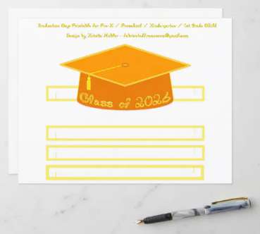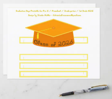 Graduation Cap Orange Party Hat Printable Class of 2026 Gold Fabric Font