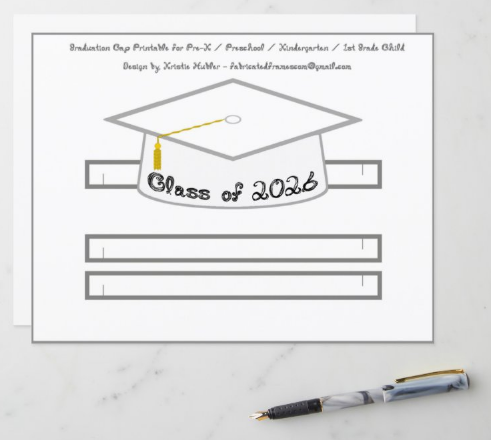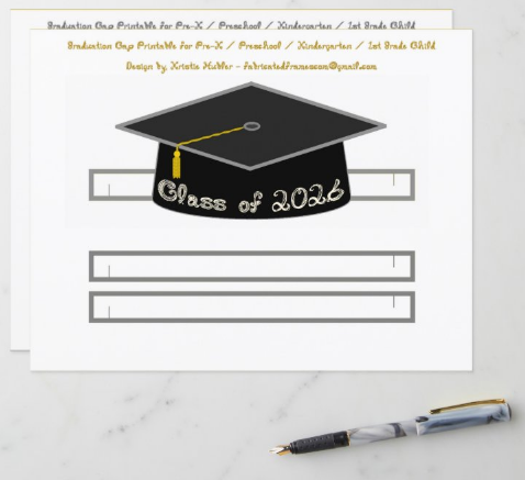 Graduation Cap White Party Hat Printable Class of 2026 Black Fabric Font