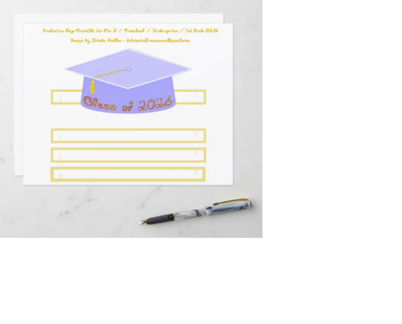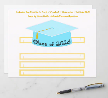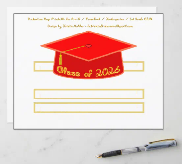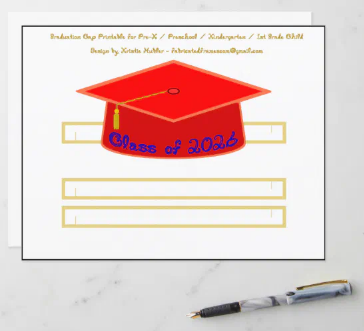 Graduation Cap Red Party Hat Printable Class of 2026 Blue Fabric Font