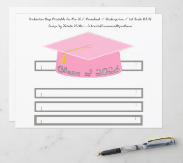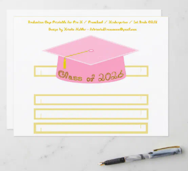 Graduation Cap Pink Party Hat Printable Class of 2026 Gold Fabric Font,
