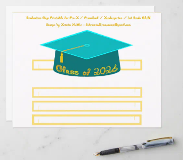 Graduation Cap Turquoise Teal Blue Party Hat Printable Class of 2026 Gold Fabric Font