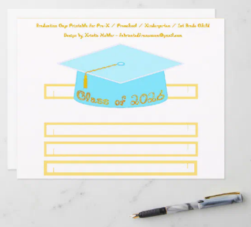 Graduation Cap Carolina Teal Blue Party Hat Printable Class of 2026 Gold Fabric Font