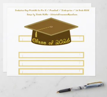 Graduation Cap Brown Party Hat Printable Class of 2026 Gold Fabric Font
