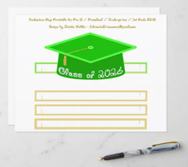 Graduation Cap Green Party Hat Printable Class of 2026 White Fabric Font