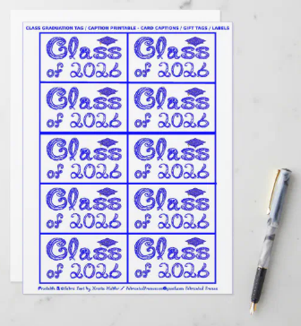 Printable 10 Class of 2026 Captions Tags For Clipart, Gift Tag & Cards With Blue Glitter Looking Color Fabric Font and Graduation Cap Art