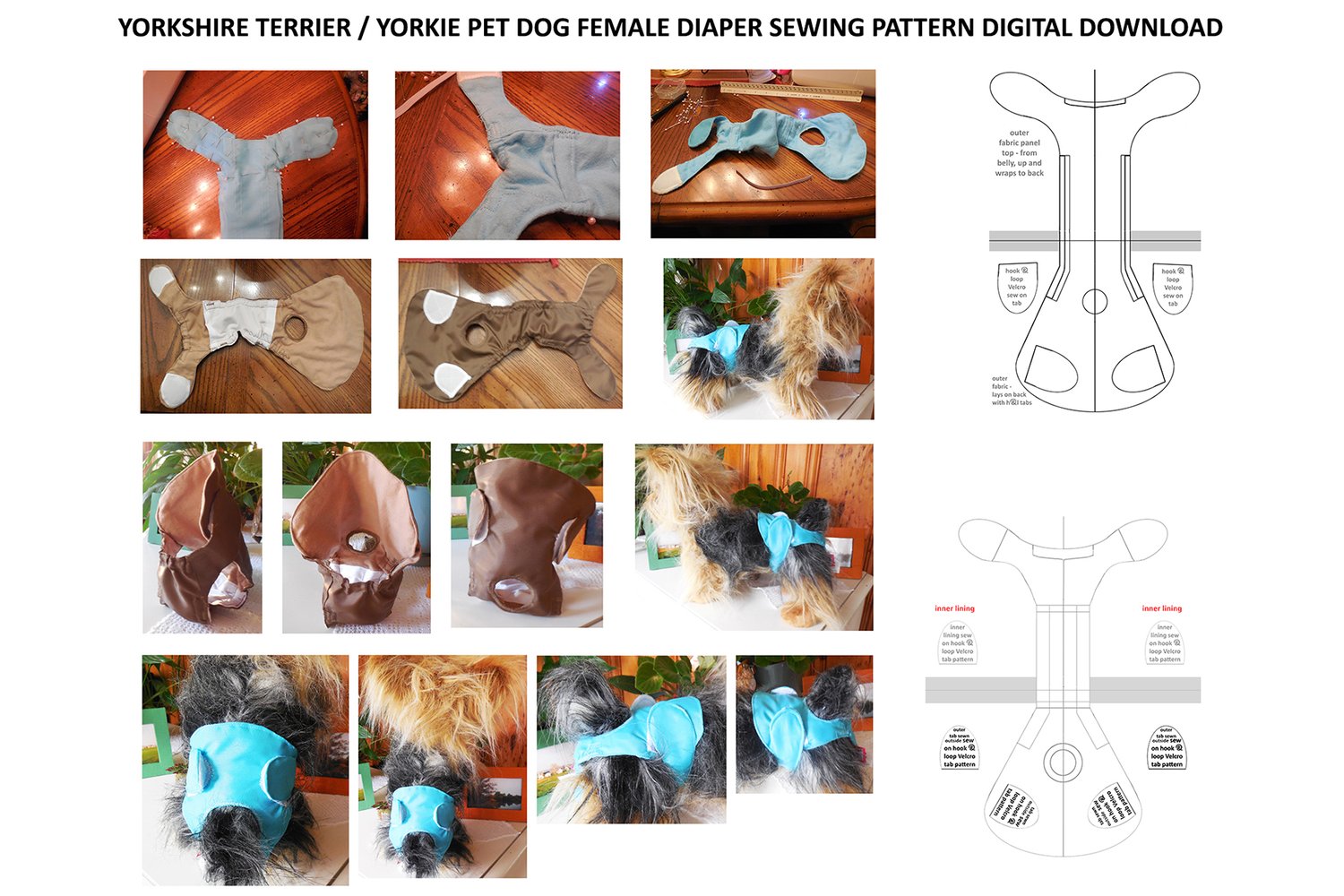 Yorkie female dog diaper sewing pattern pdf download for Yorkshire Terrier with pocket panel inside for pad