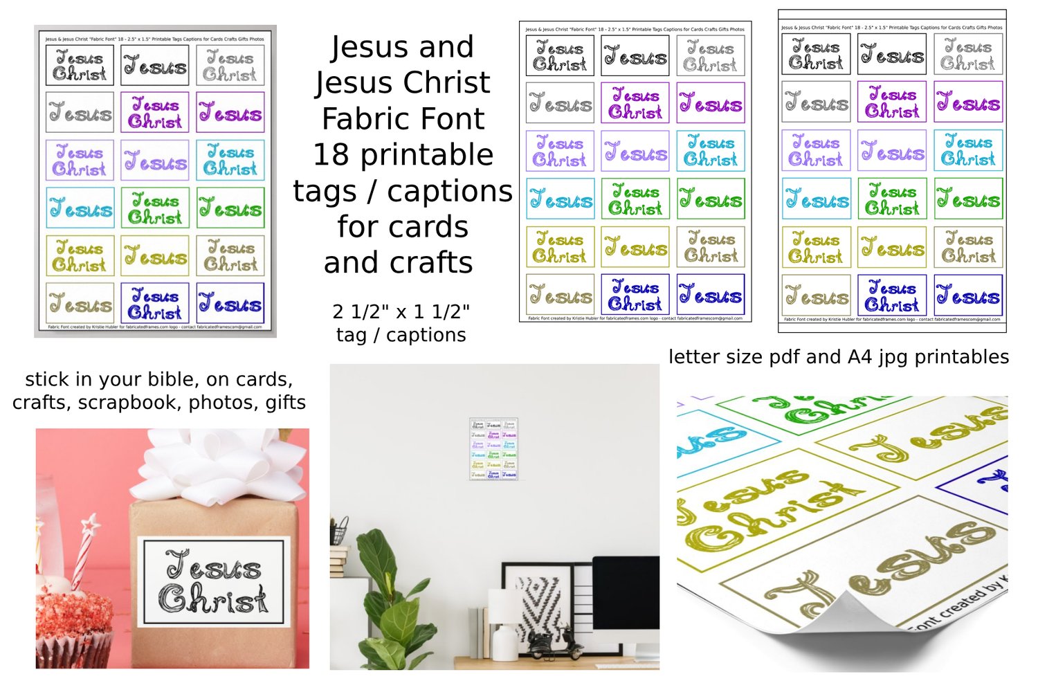 Jesus and Jesus Christ Fabric Font 18 printable tags captions for cards and crafts