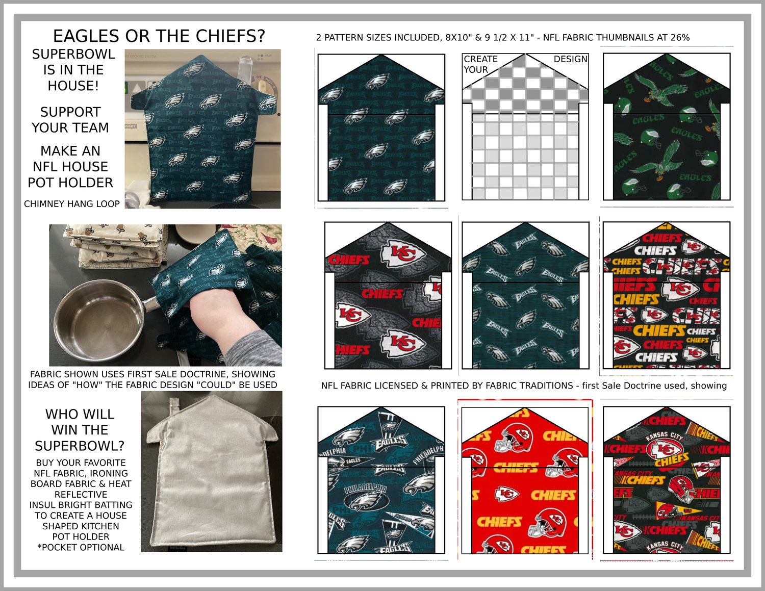 Superbowl House Potholder Sewing Patterns PDF for kitchen pot holders 2 sizes - Buy NFL fabric to make!