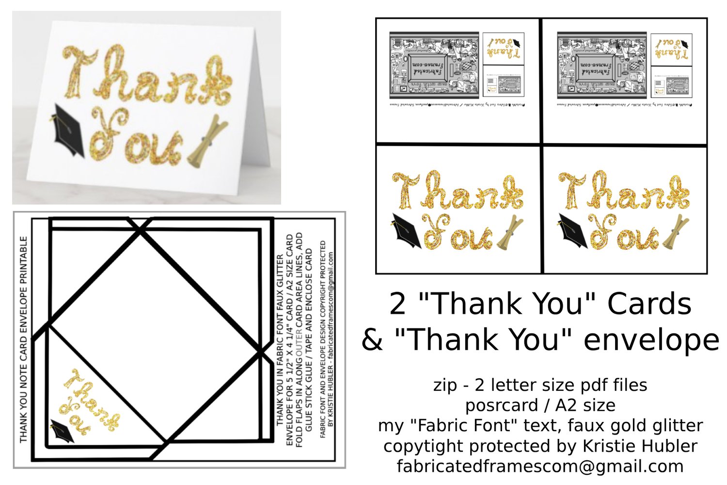 Graduation Thank You Card and Envelope Printables Set 2 Cards Fabric Font Text