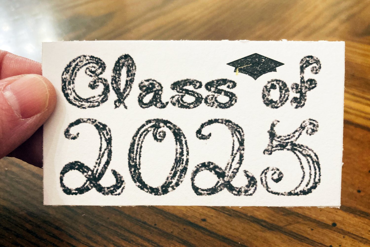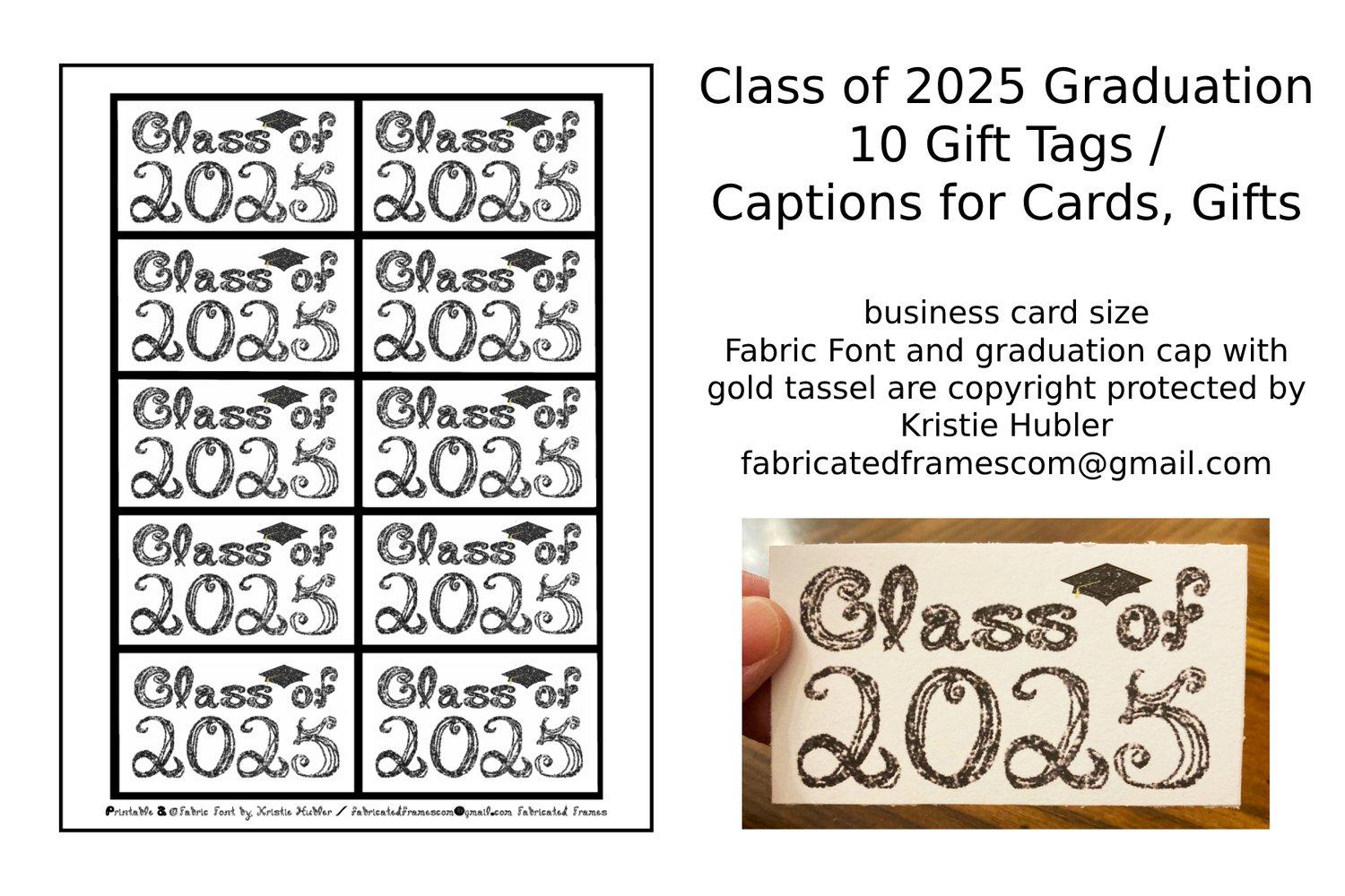 Class of 2025 Graduation Cap Black Shiny Fabric Font 10 Gift Tags Printable