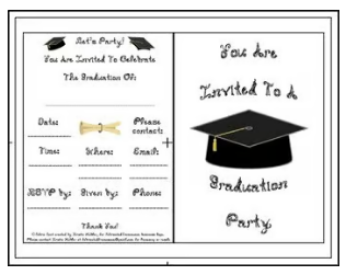 Graduation Party Invitation or 2 Invitations Black School Color Cap Fabric Font