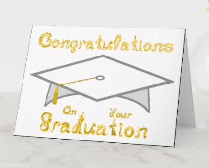 White Graduation Cap Card or Party Hat & Gold Faux Glitter Fabric Font Printable