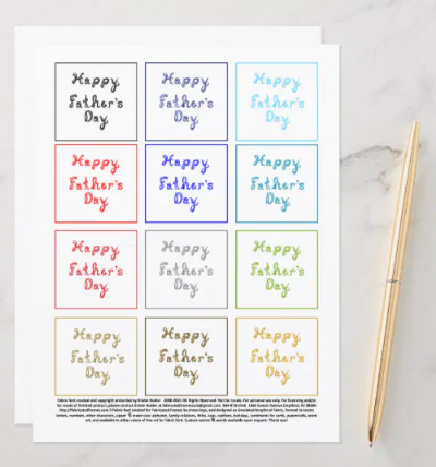 12 Colors Happy Father's Day Fabric Font Tags / Captions Printable