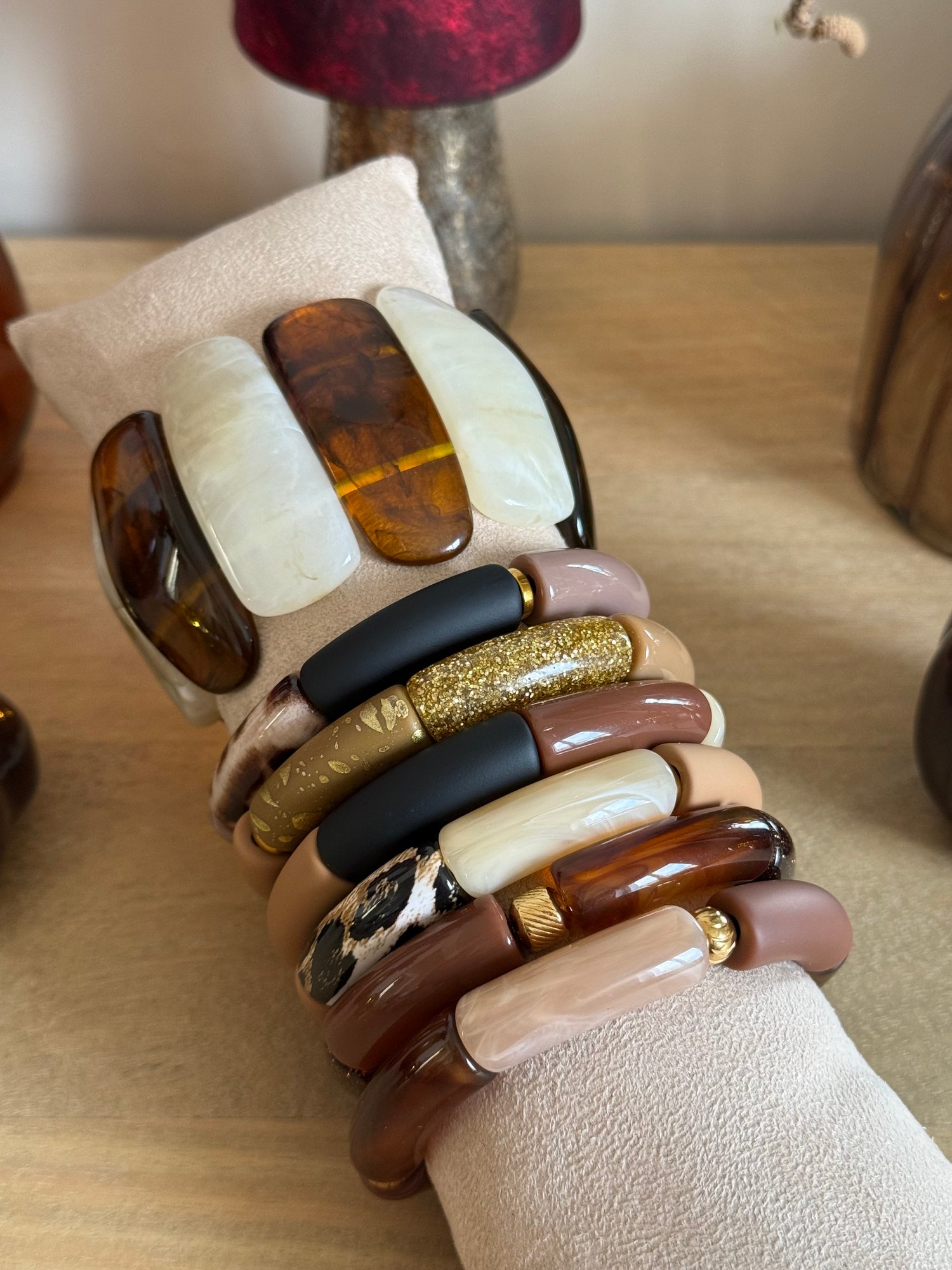 Je vous propose des bracelets en résine, pensés pour sublimer vos poignets.