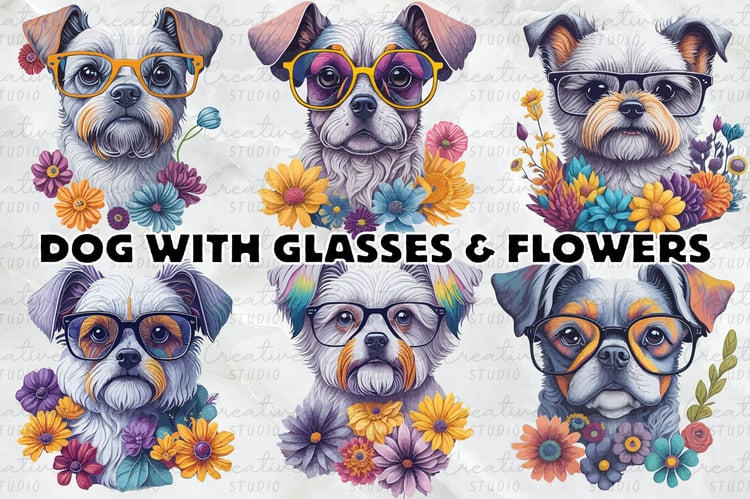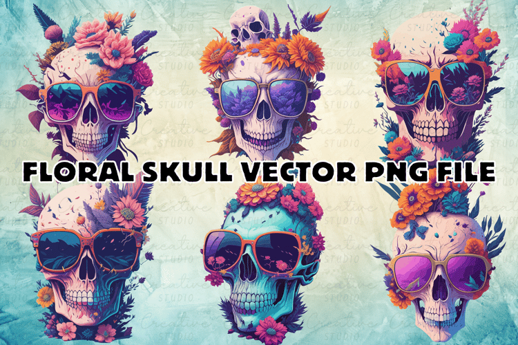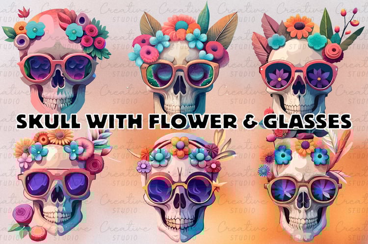 Vintage Skull with Sunglasses and Flowers Clip Art