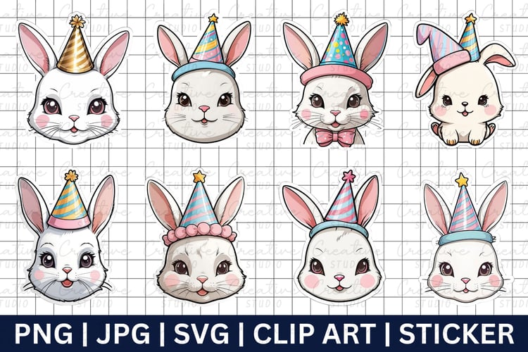 Rabbit with Party Hat Design Clip Art Sticker Sublimation