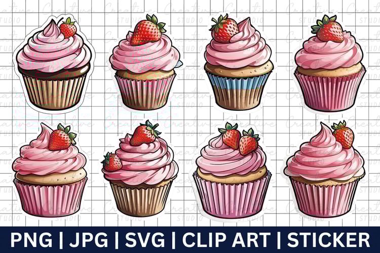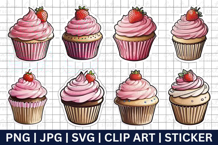 Strawberry Cupcake Design Clip Art Sticker Sublimation