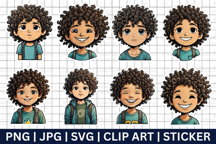 Curly Hair Boy Design Clip Art Sticker Sublimation