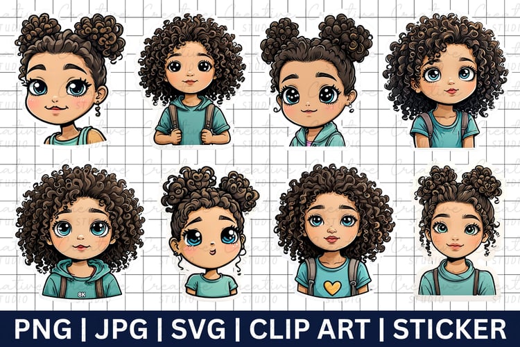 Curly Hair Girl Design Clip Art Sticker Sublimation