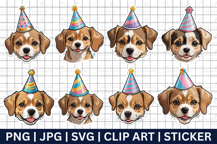 Cute Dog With Party Hat Design Clip Art Sticker Sublimation