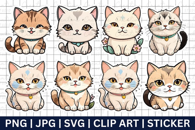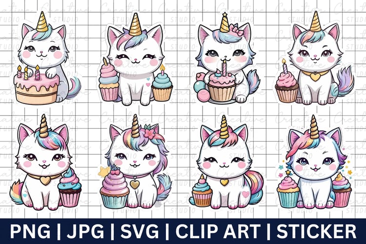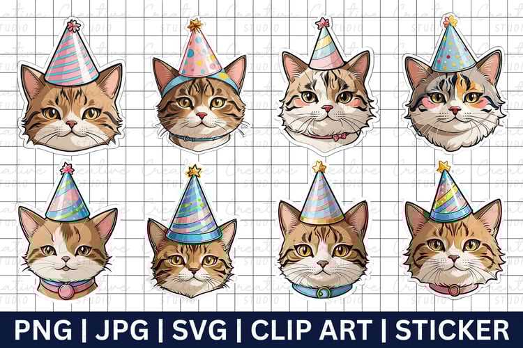 Cat With Party Hat Design Clip Art Sticker Sublimation
