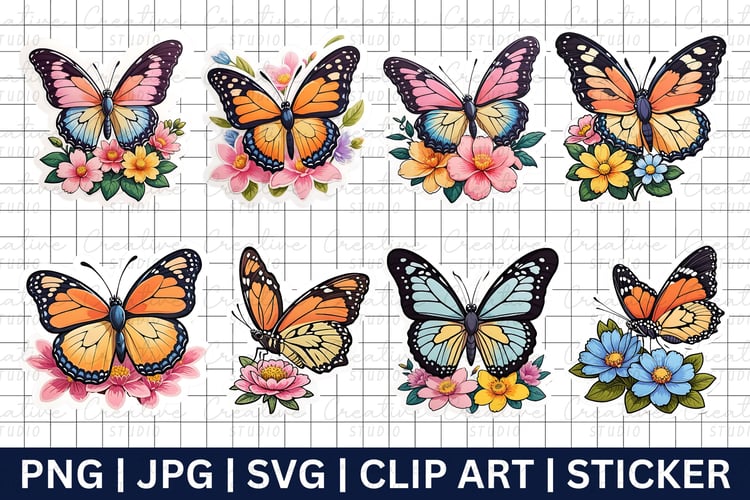Butterfly on Flowers Design Clip Art Sticker Sublimation