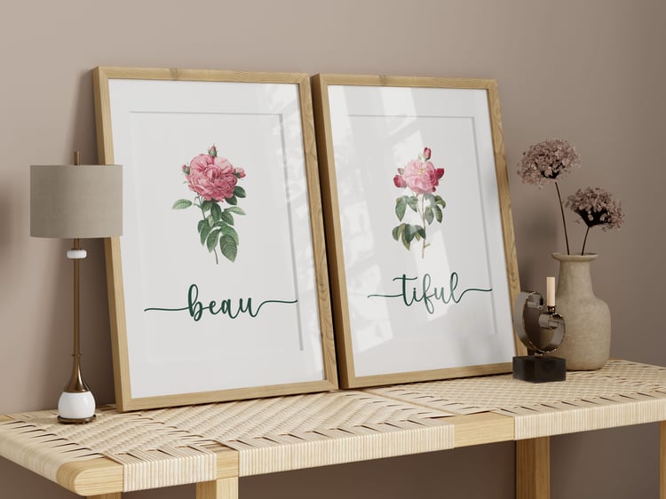 Set of 2 Beautiful Rose Printable Wall Art Poster