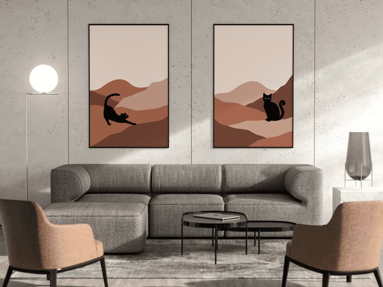 Set of 2 Bohemian Cat Landscape Printable Wall Art Poster