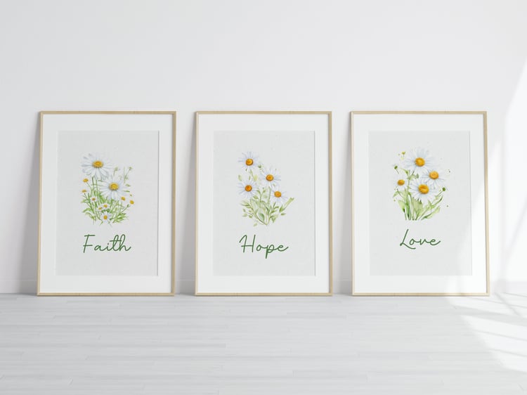 Set of 3 Faith Hope Love Printable Wall Art Poster