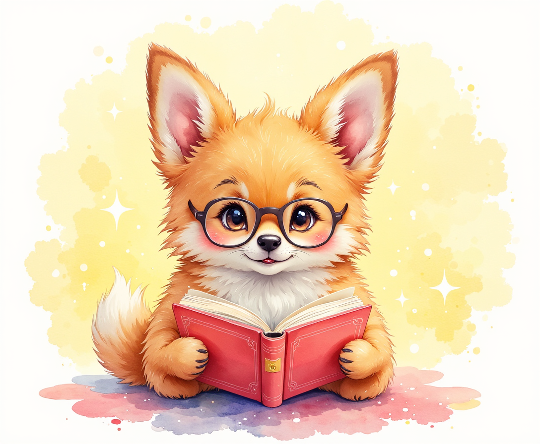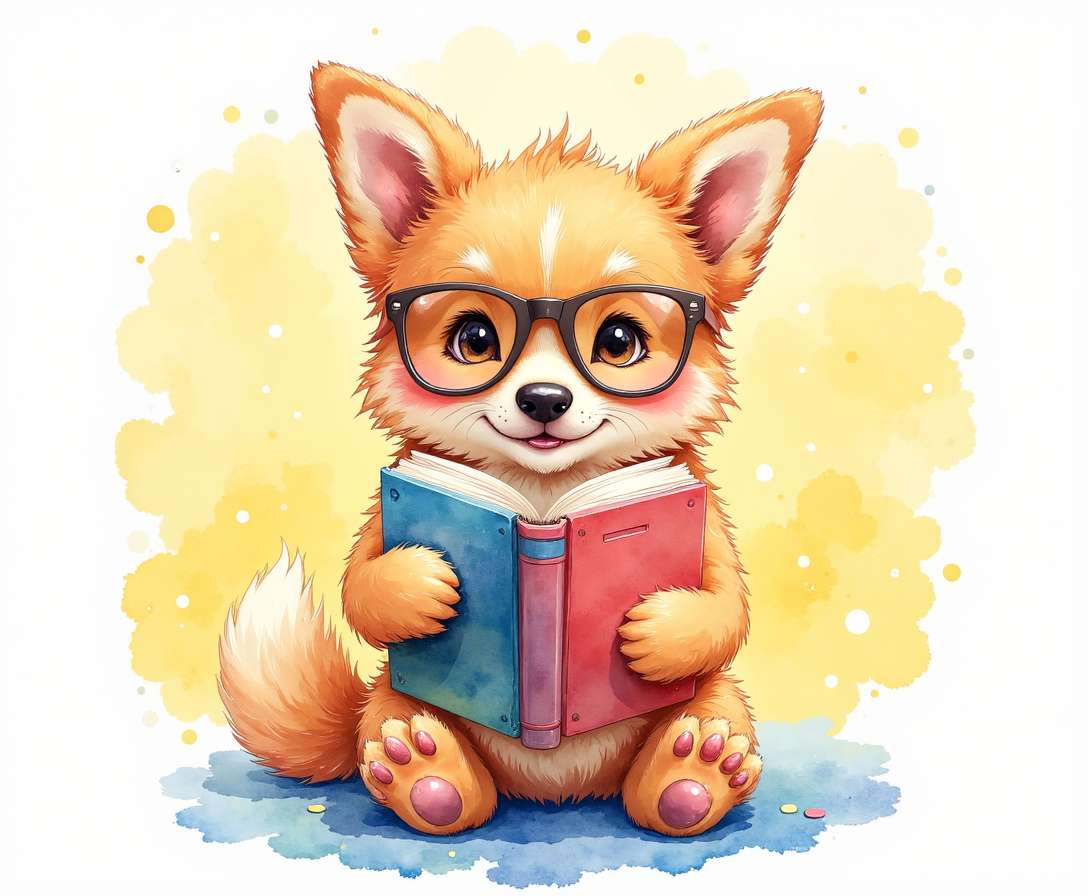 - Adorable Fuzzy Dog with Glasses | Kawaii Watercolor Wall Art