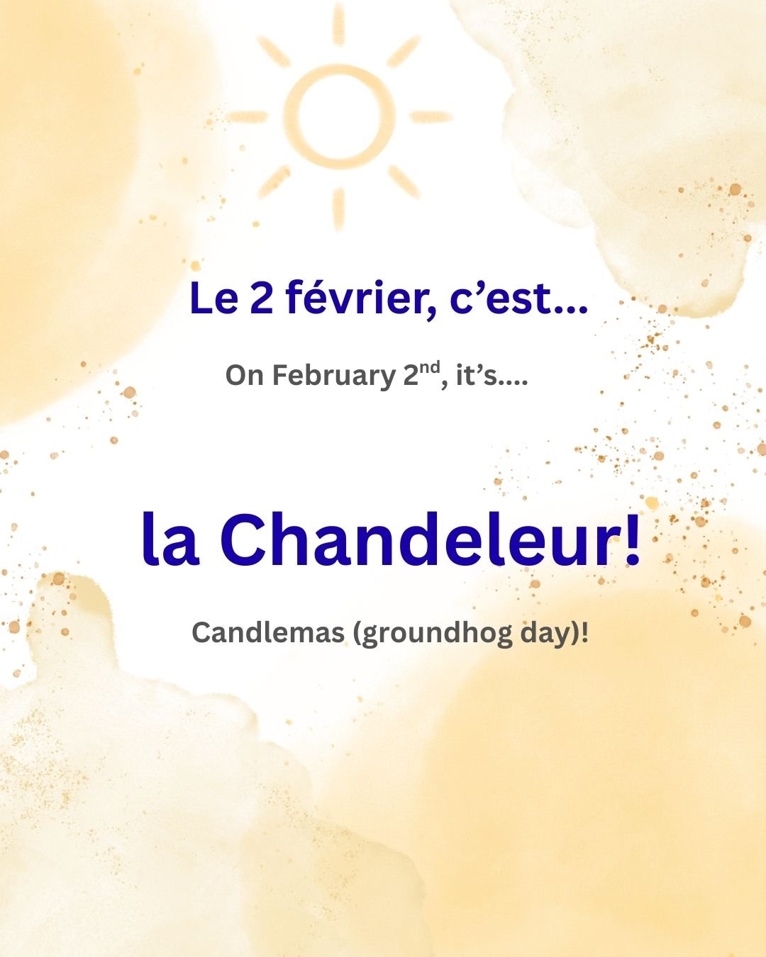 Le 2 février, c'est la chandeleur. En France, c’est l’occasion de manger des crêpes! Pourquoi? Une des origines de cette fête est de célébrer l’arrivée du printemps. La crêpe est ronde et dorée comme le soleil. Alors, mangeons des crêpes! C’est...