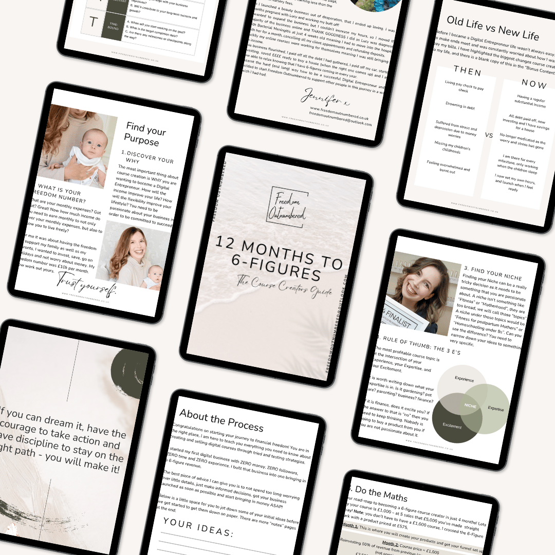 This guide will lead you step-by-step through the course creation journey and shows you EXACTLY how you can achieve a 6-Figure business within 12 months!