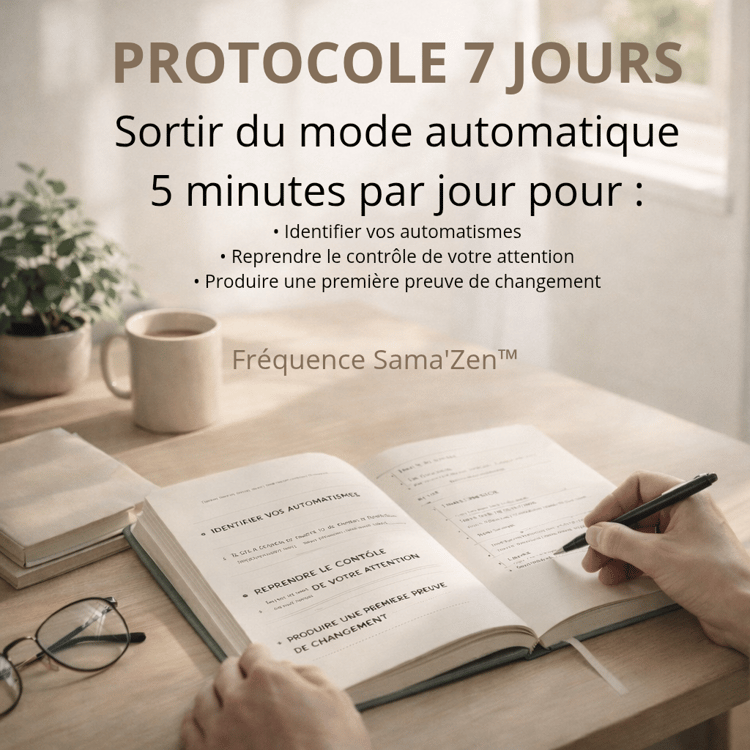 Découvre l’approche Fréquence Sama'Zen™ avec un protocole guidé pour commencer à sortir du mode automatique en