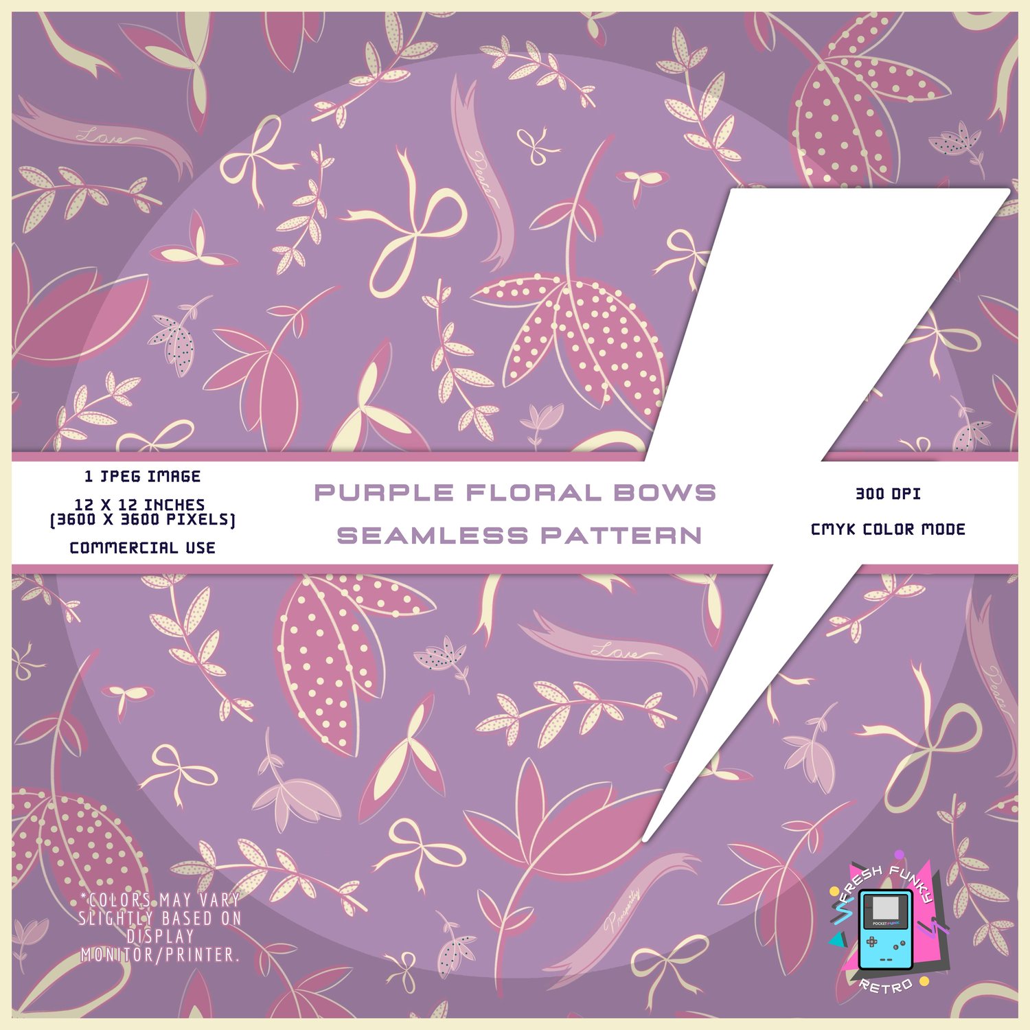Purple Floral Bows Seamless Pattern for Personal or Commercial Use, Purple Floral Bows Digital Paper | Instant Download