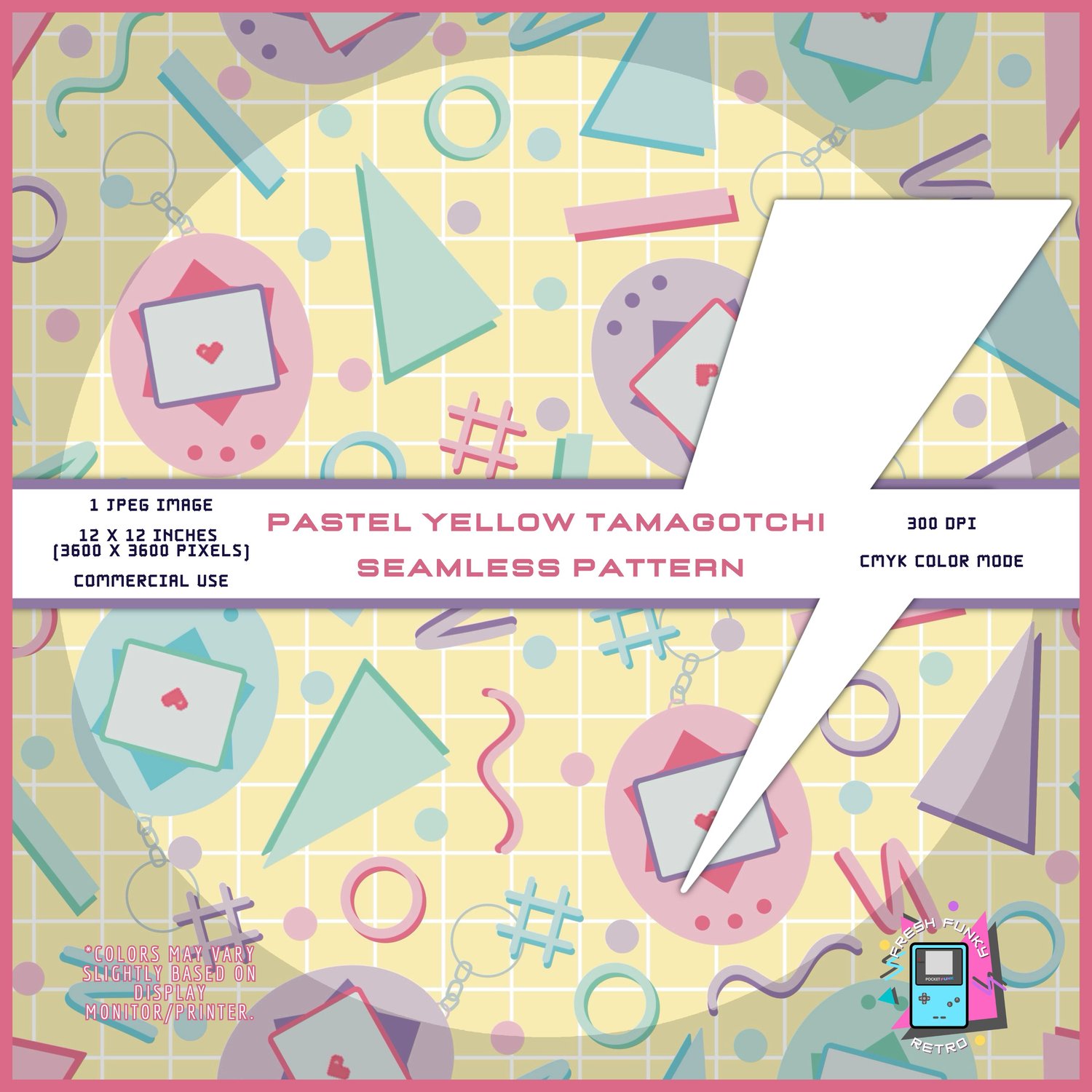 Pastel Yellow Tamagotchi Seamless Pattern for Personal or Commercial Use, Retro Gaming Digital Paper | Instant Download