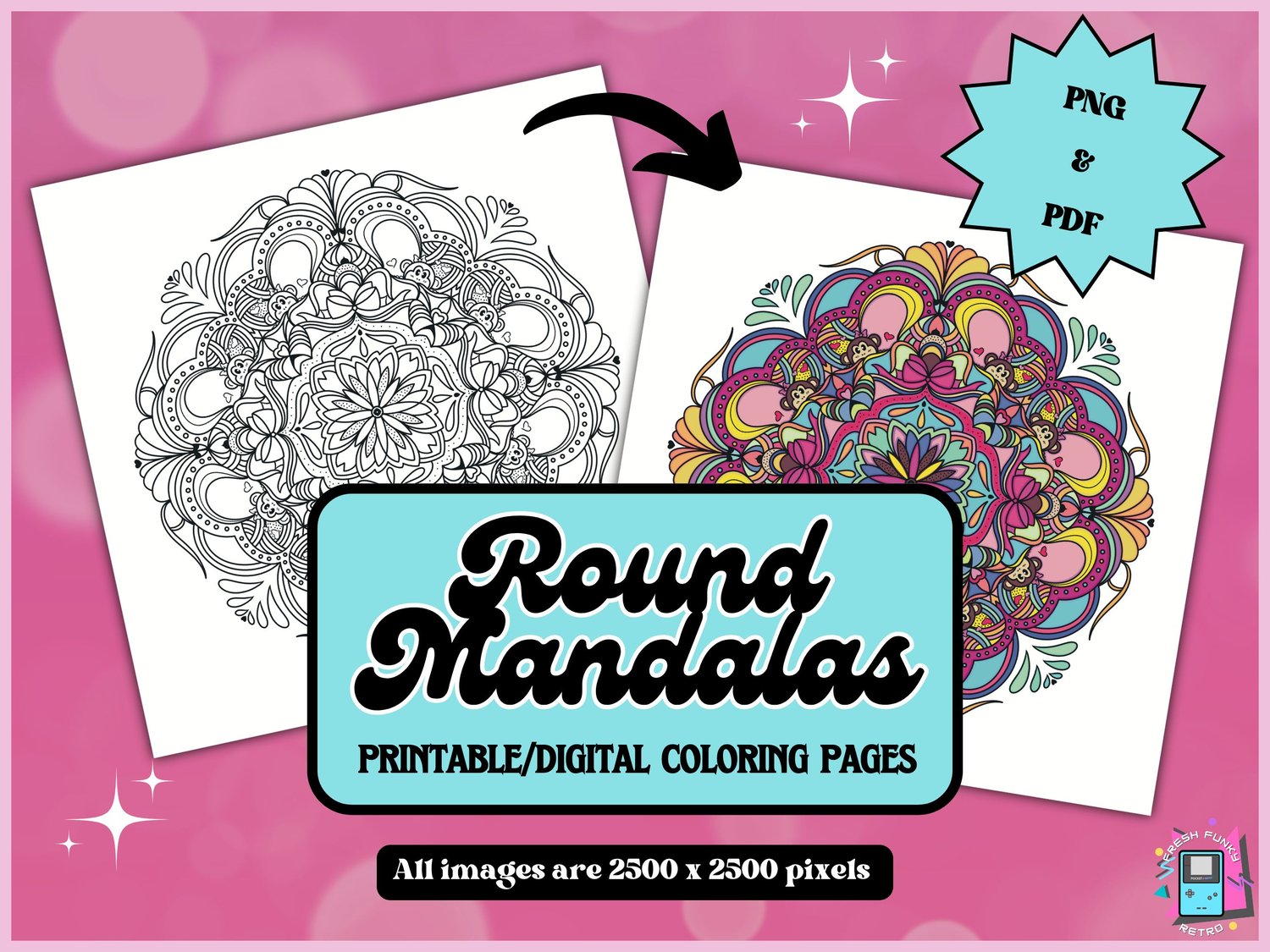 Cute Round Mandala Printable & Digital Coloring Book Pages | Printable Coloring Pages For Kids & Adults