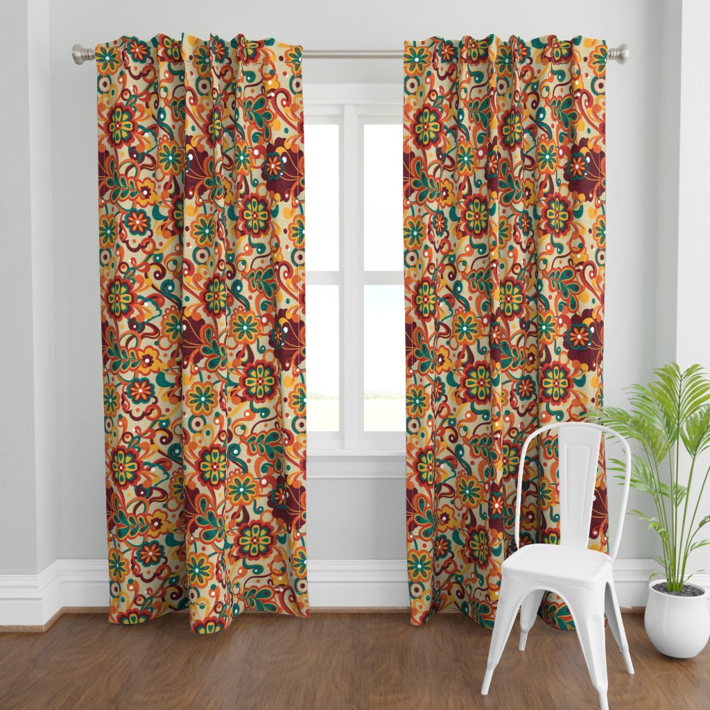 A design with fun, brightly colored summer florals and palm tree leaves.