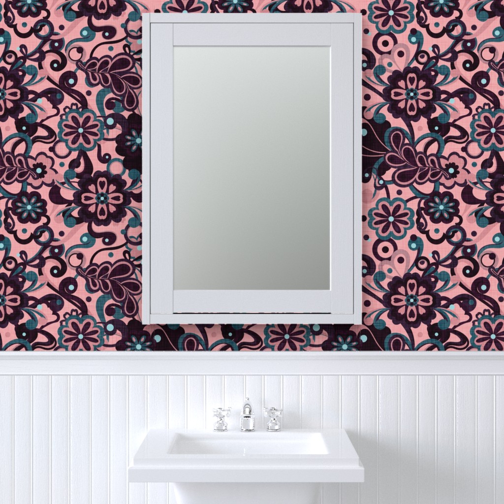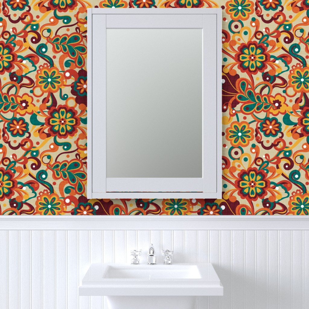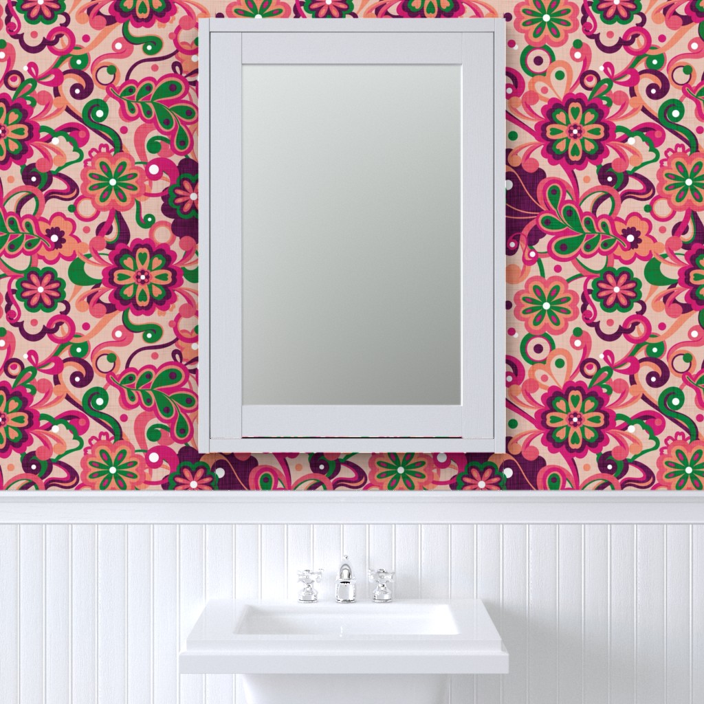 A whimsical design with florals, cute bunnies, mushrooms, and plenty of greenery.