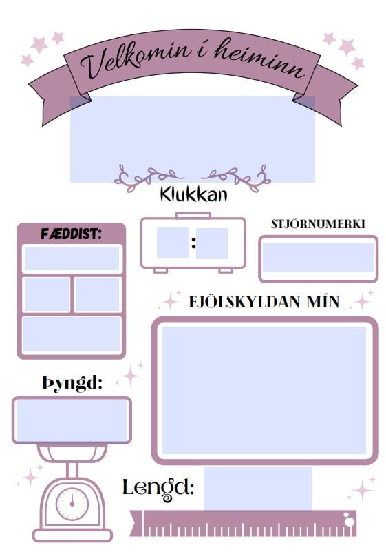 Velkomin(n) í heiminn - hægt að fylla út fyrir stelpu/strák