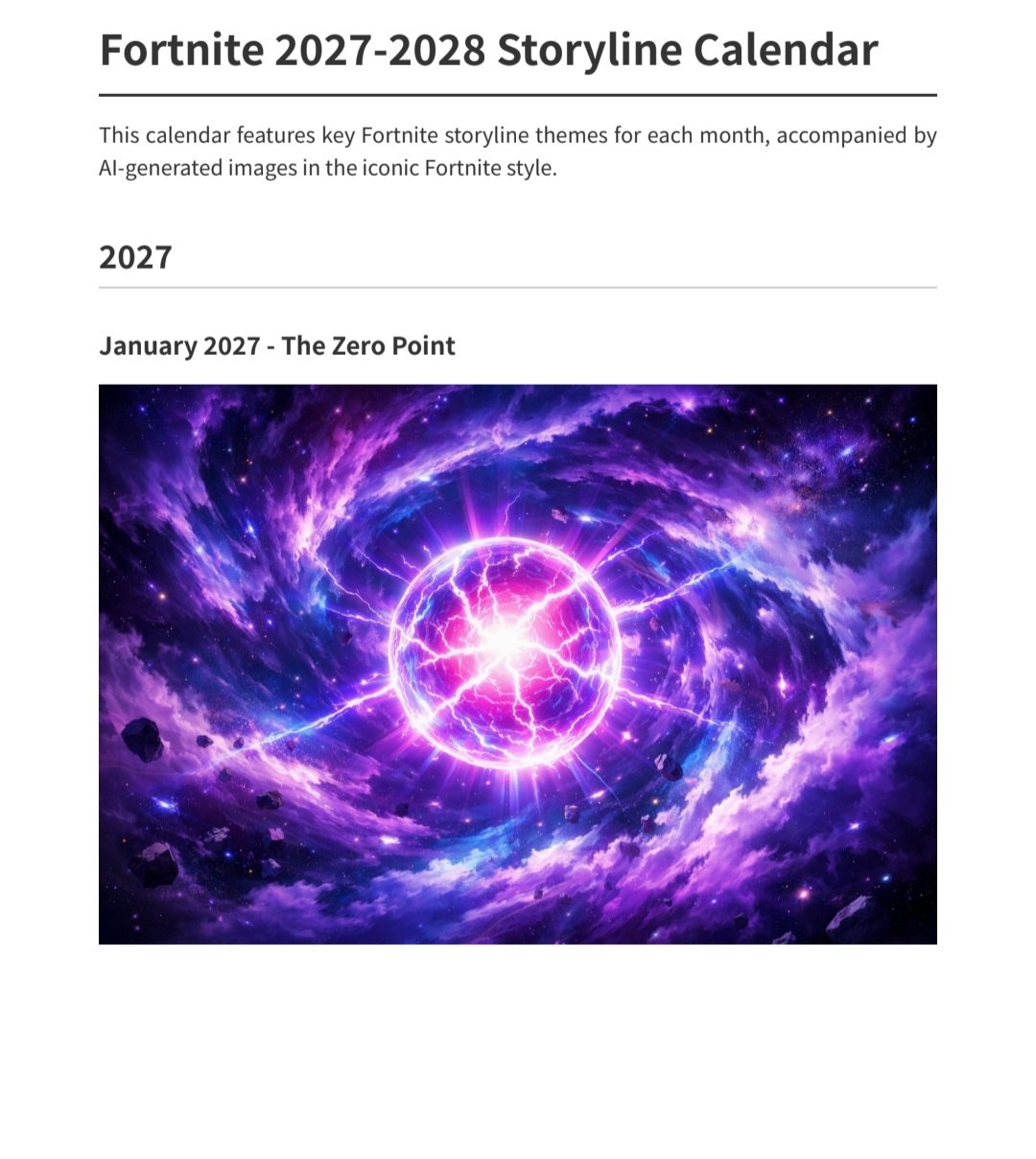 2027-2028 Fortnite Storyline Calendar (Printable)